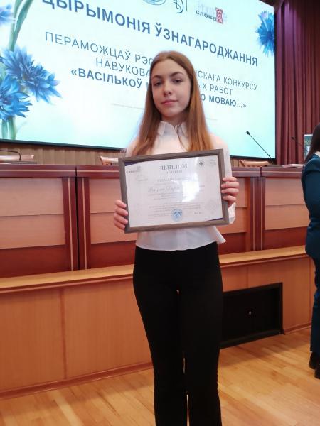 В копилку достижений Слонимщины добавилась еще одна значимая победа. Диплома II степени удостоена учащаяся 10 класса государственного учреждения образования «Средняя школа № 8 имени М.Т. Анищика г. Слонима» Ботько Дарья.