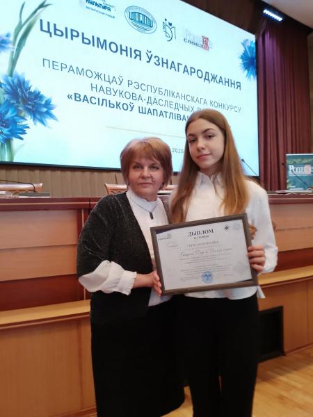 К успеху на республиканском уровне десятиклассницу привела её научный руководитель – Ганисевская Ирина Петровна, учитель белорусского языка и литературы. Именно мудрость наставника и кропотливая исследовательская работа самой Дарьи позволили достойно представить школу и город на столь представительном форуме юных ученых.