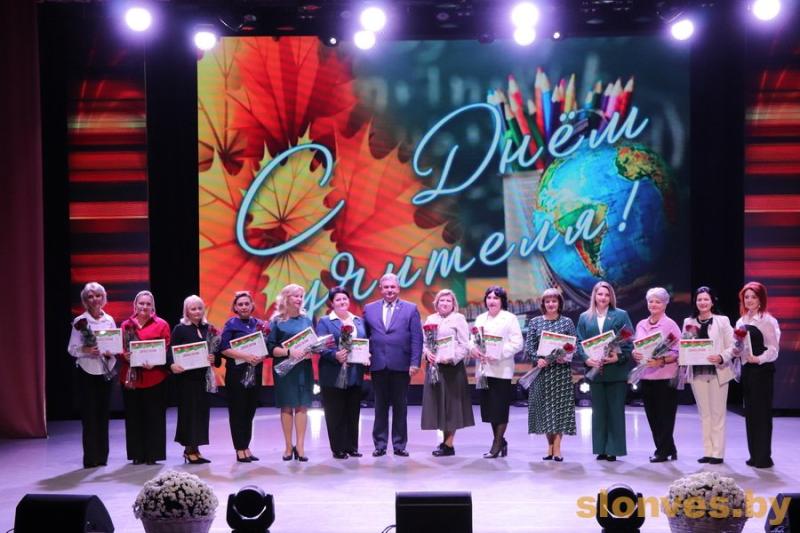 Поздравить педагогов Слонимщины пришли почётные гости: председатель Слонимского районного исполнительного комитета Геннадий Болеславович Хомич, председатель районного Совета депутатов Олег Мечиславович Таргонский, начальник управления образования райисполкома Светлана Викторовна Валько, председатель районного комитета профсоюза работников образования и науки Наталья Николаевна Фидрик, председатель районной организации общественного объединения «Белорусский союз женщин» Наталья Михайловна Грасевич. Каждый из них отметил важность роли учителей в воспитании и развитии молодого поколения и подчеркнул их неоценимый вклад в развитие общества.
