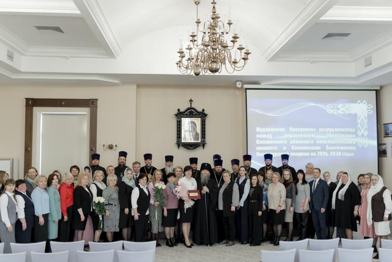 25 марта в Свято-Успенском Жировичском митрополичьем мужском монастыре состоялось торжественное подписание программы сотрудничества между управлением образования Слонимского районного исполнительного комитета и Слонимским благочинием Новогрудской епархии на 2026-2030 годы. Это соглашение стало важным шагом к укреплению взаимодействия между учреждениями образования района и приходами Слонимского благочиния.