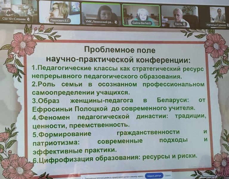 11 марта 2026 года на базе ГУО «Средняя школа № 10 имени В.И.Пеленицына г.Слонима» состоялось онлайн-заседание Совета областного клуба родителей будущих педагогов, в котором приняли участие родители учащихся педагогических классов.