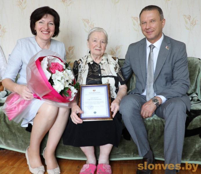 С почетной миссией к ней домой в деревню Новоселки приехали председатель райисполкома Хомич Геннадий Болеславович и начальник управления образования райисполкома, председатель районной организации РОО «Белая Русь» Валько Светлана Викторовна. Встреча с ветераном прошла в теплой и дружеской атмосфере. Гости тепло и сердечно поздравили Учителя с большой буквы для многих поколений учащихся. Софья Константиновна – заслуженный учитель БССР, отличник народного образования, награждена Почетной грамотой Верховного Совета БССР и другими наградами – в течение 25 лет (с 1970 по 1995 год) была директором Новоселковской школы.